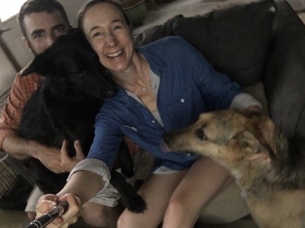 And, here’s a series of hilarious attempts at a 2017 family selfie with 85-pound Fletcher and 55-pound Okra….